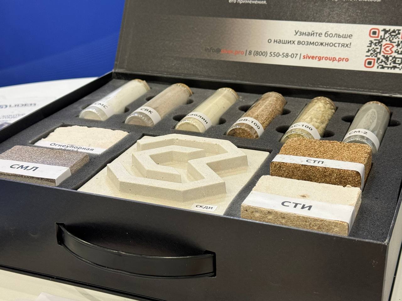🔹 Сыпучие материалы – отдельный бокс с материалами а-Рокса и Группы Сивер, в котором были представлены: